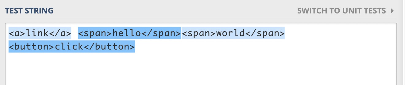 <a>link</a> <span>hello</span><span>world</span> <button>click</button>
