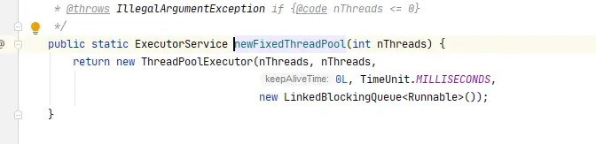 return new ThreadPoolExecutor(nThreads, nThreads,0L, TimeUnit.MILLISECONDS,new LinkedBlockingQueue<Runnable>());