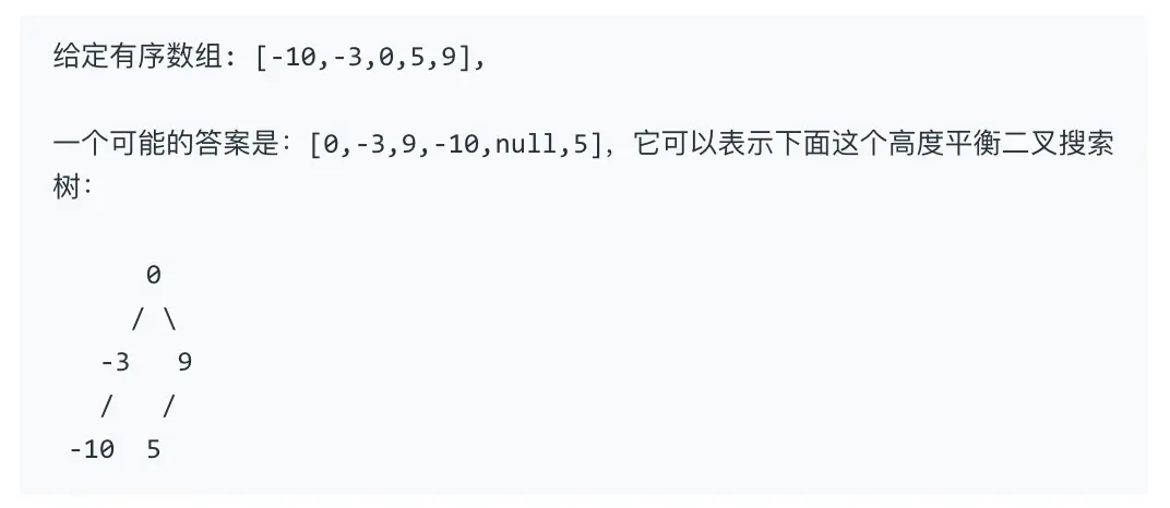 我们知道,一个二叉搜索树的中序遍历就是一个排序的数组,所以这道题的意思就是,给定一个二叉搜索树的中序遍历,构建出一个平衡的二叉搜索树。