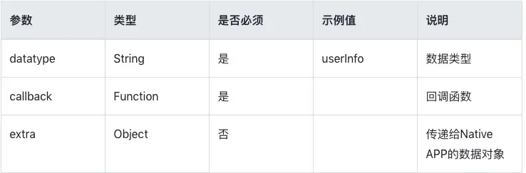 1.getData(datatype, callback, extra) H5从Native APP获取数据