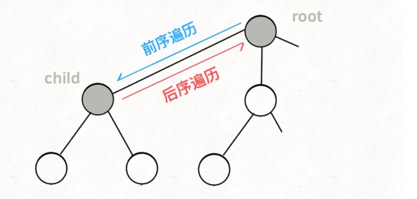 前序遍历的代码在进入某一个节点之前的那个时间点执行,后序遍历代码在离开某个节点之后的那个时间点执行。