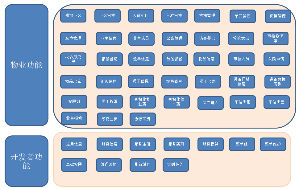 service-community #小区资产信息 存放服务 楼栋 单元 房屋 巡检 通知 停车位 报修 访客等功能