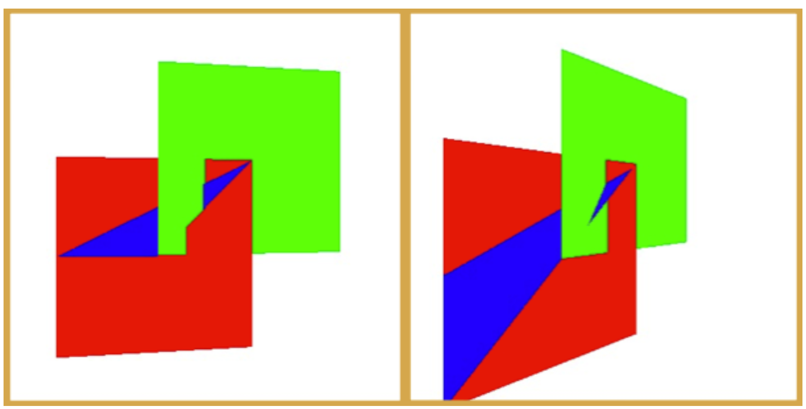 开启深度测试后,由于深度缓冲区精度有限制,导致深度值在误差极小时,OpenGL出现无法判断的情况,导致出现画面交错闪现的现象,例如下图