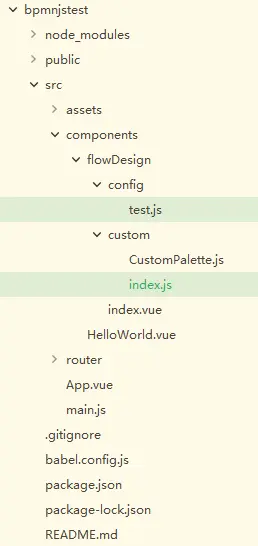 在flowdesign中新建目录custom。并在custom下新建index.js和CustomPalette.js。新建完后目录如下: