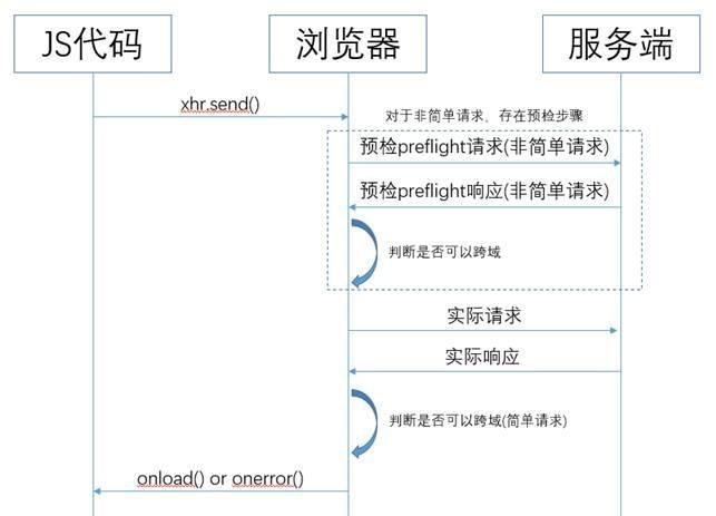 对于简单请求,浏览器会直接发起CORS请求,将实际请求发给服务器,服务器返回响应给浏览器,同时在响应头域中携带CORS相关头域,供浏览器进行跨域判断。