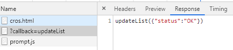 由于它是一个js,并且已经定义了upldateList函数,所以能正常执行,并且跨域的数据通过传参得到。这就是JSONP的原理。