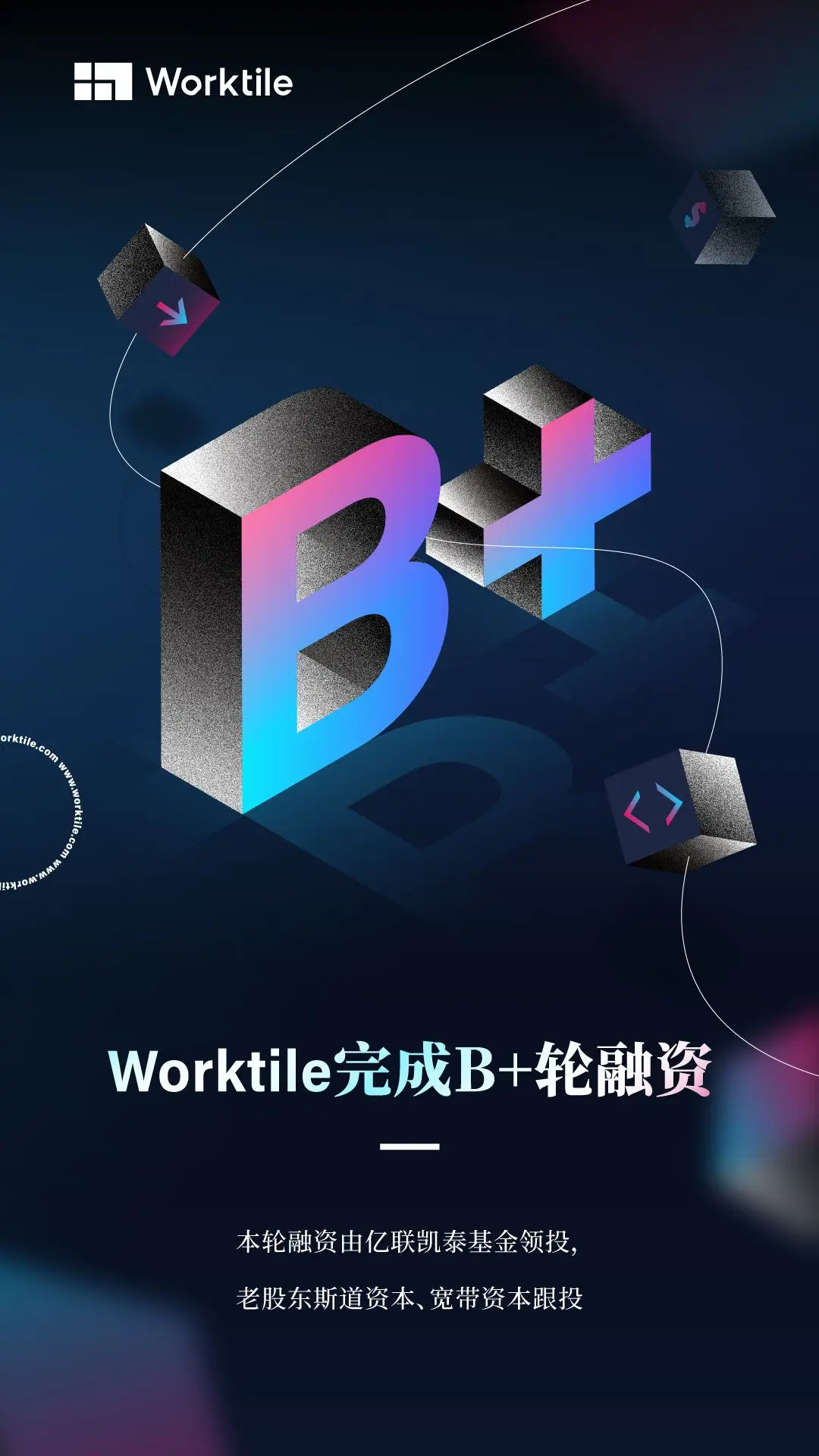 Worktile 宣布完成B+轮融资。本轮融资由亿联凯泰基金领投,老股东斯道资本、宽带资本跟投。该轮融资将用于公司产品技术研发及市场拓展。