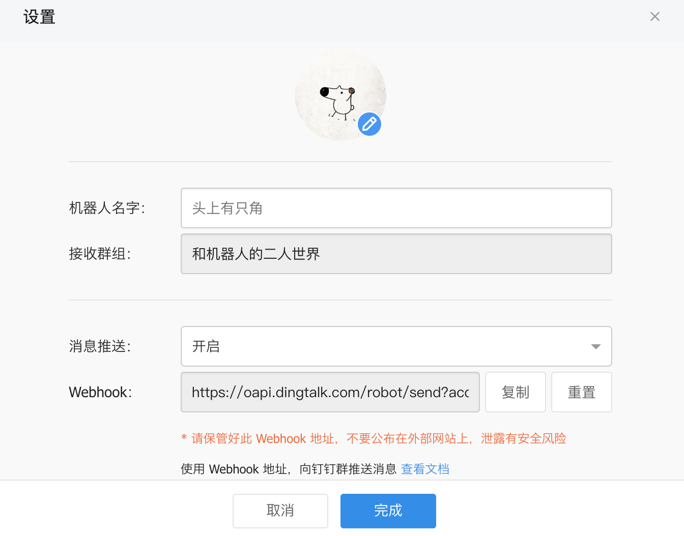 最近实行了值班制度,需要在在线文档上填上值班人员,每天大家上去看一下今天谁值班,基于懒惰的本质就打算用钉钉机器人写一个提醒。