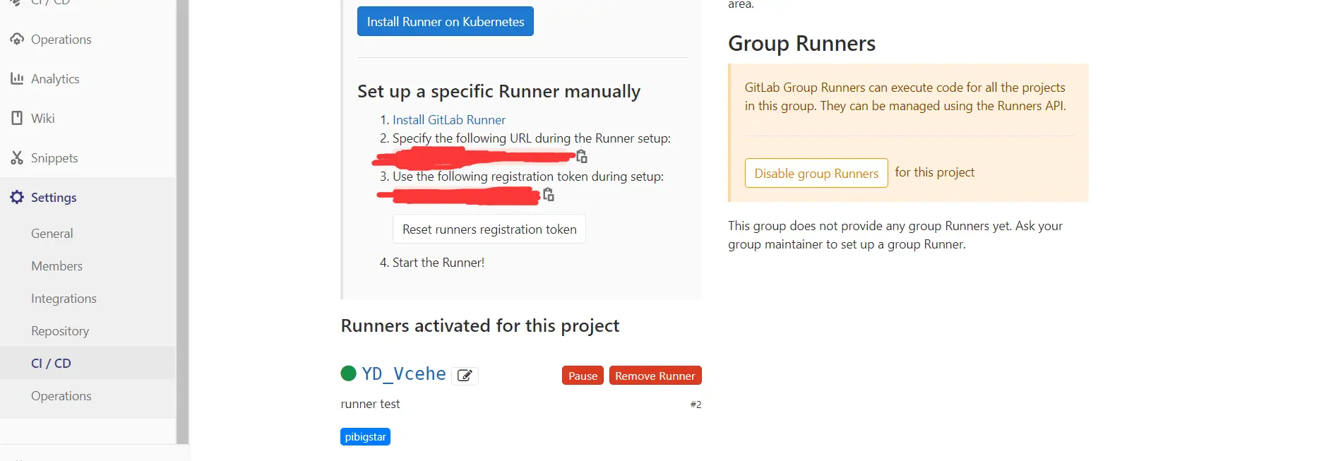 注意 输入的gitLab地址和token可以在gitLab > Setting > CI/CD > runner 下面看到