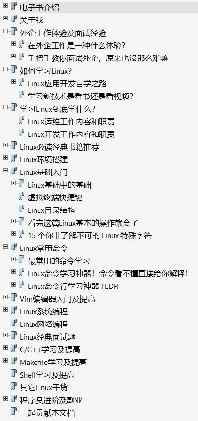 $ dir --color$ vdir --color最后,最近很多小伙伴找我要Linux学习路线图,于是我根据自己的经验,利用业余时间熬夜肝了一个月,整理了一份电子书。无论你是面试还是自我提升,相信都会对你有帮助!目录如下: