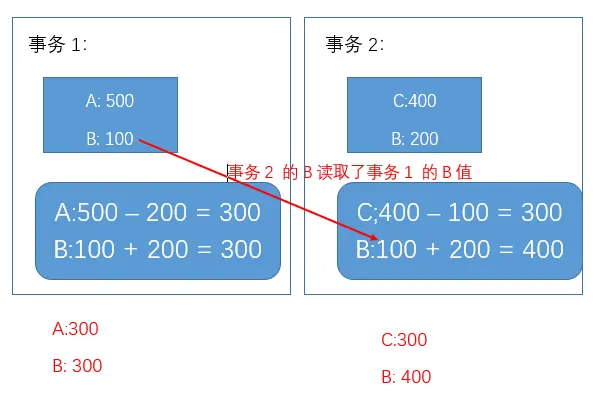 这就是上面所说的例外情况了,这个隔离级别下,其他事务可以看到本事务没有提交的部分修改.因此会造成脏读的问题(读取到了其他事务未提交的部分,而之后该事务进行了回滚).