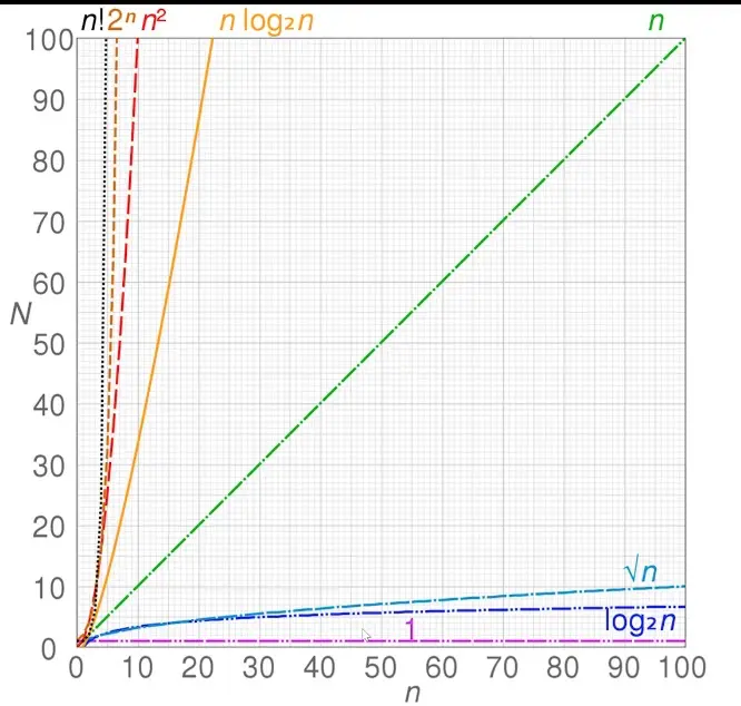 时间复杂度就是一个函数,定性描述该算法的运行时间。用大O表示7种常见的实际复杂度,比如