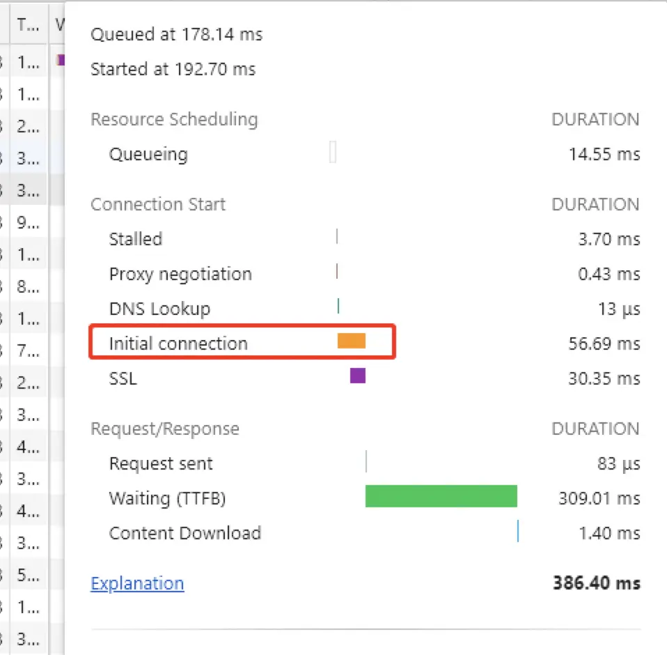 当你刷新页面的时候,相同的请求已经没了Initial connection