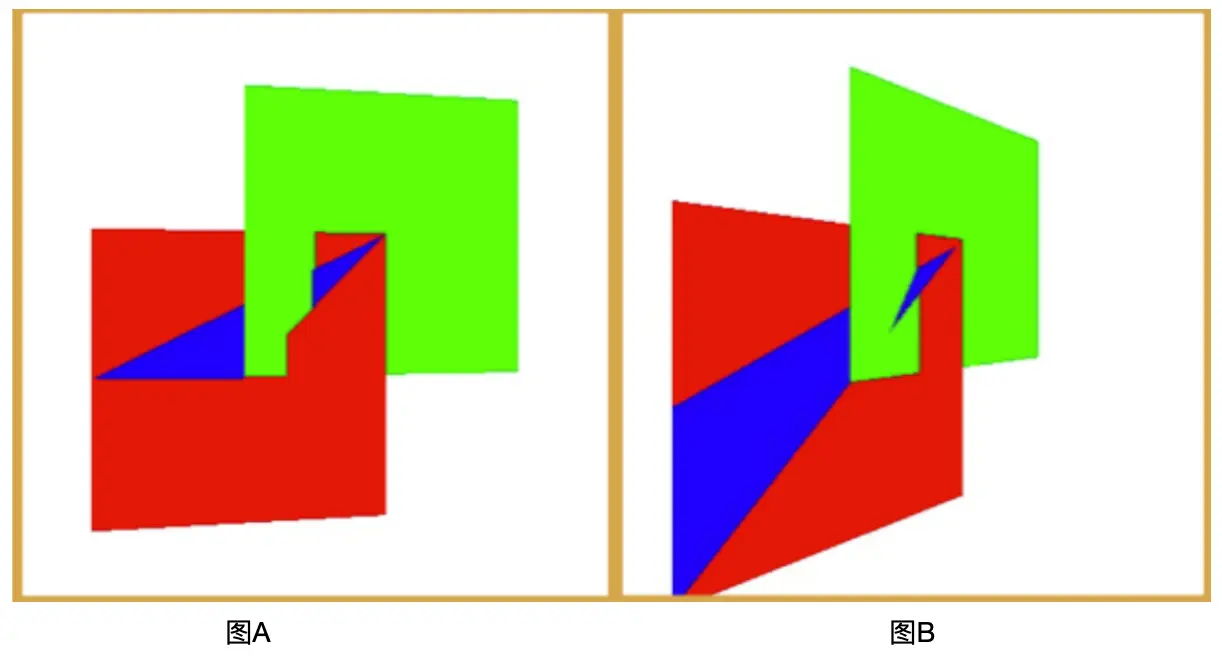 接上一个案例,案例5中,我们使用了深度测试,解决OpenGL绘制立体图形时,由于无法判断该显示两个点A(x,y,z1)和点B(x,y,z2)两个点中的哪个点,而造成图形凹陷的效果,那么深度测试解决的办法时,A、B两点谁距离观察者近,显示谁。那么深度测试有没有什么隐患呢?这个隐患又该怎么解决,看一下图