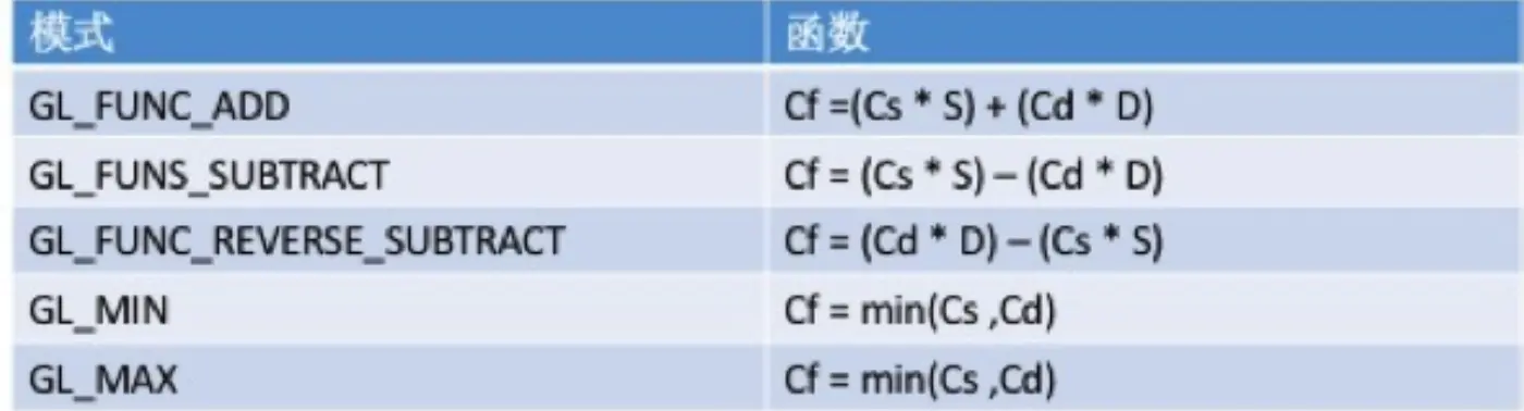 目标颜色:已经存储在颜色缓存区的颜色,也就是之前已经完成颜色运算的结果;