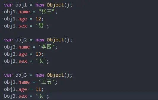 Object是系统提供的构造函数,专门用来创建对象使用的,如下例 保存多个人的信息需要多次创建.
