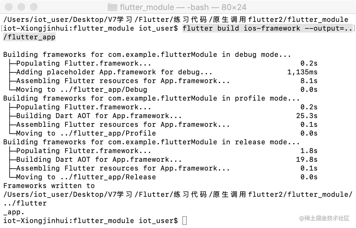 1.打开终端,cd到flutter_module所在的文件中,执行以下命令