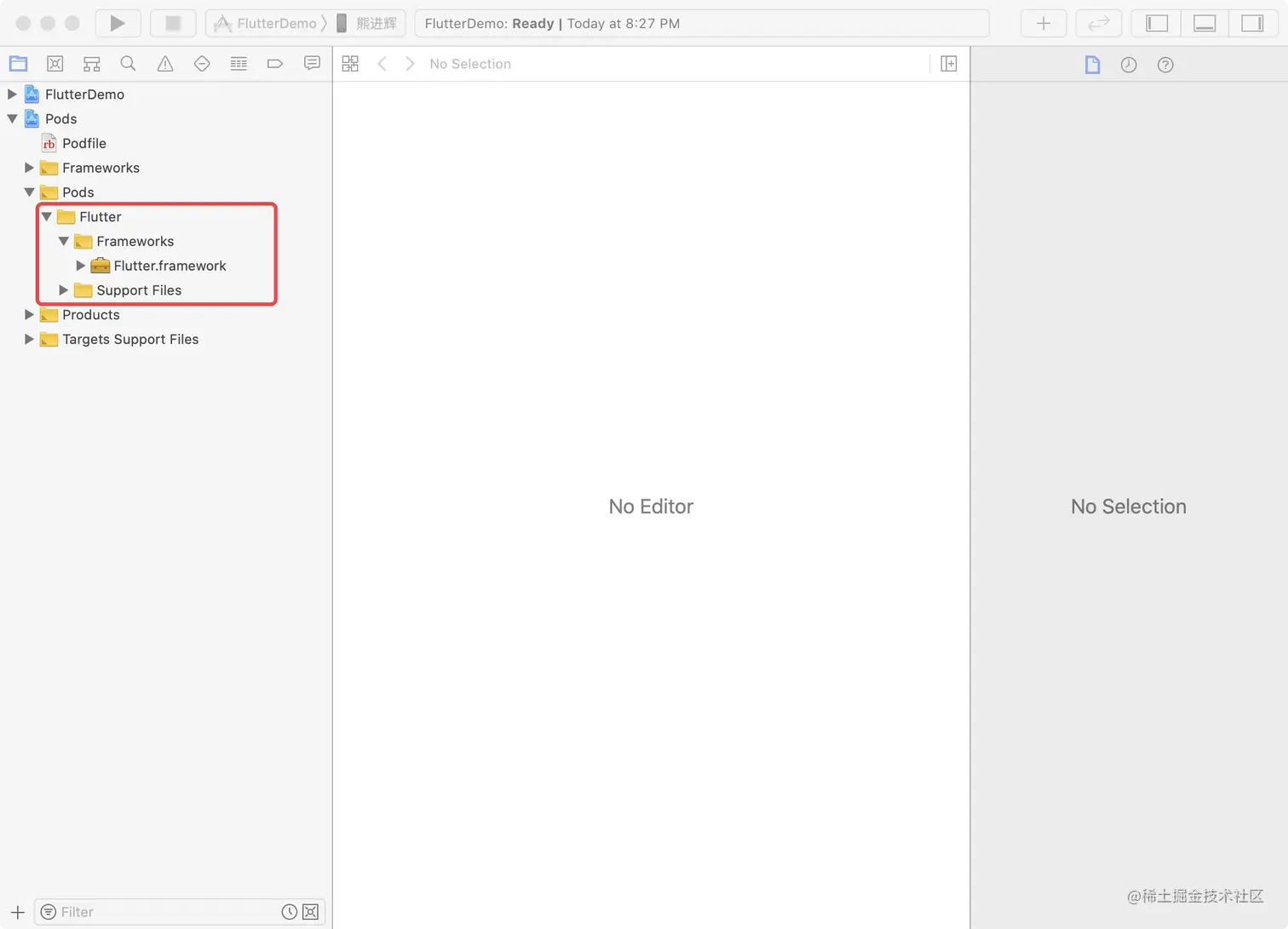 'Flutter/Debug/Flutter.podspec'就是项目当前依赖的flutter代码的文件路径