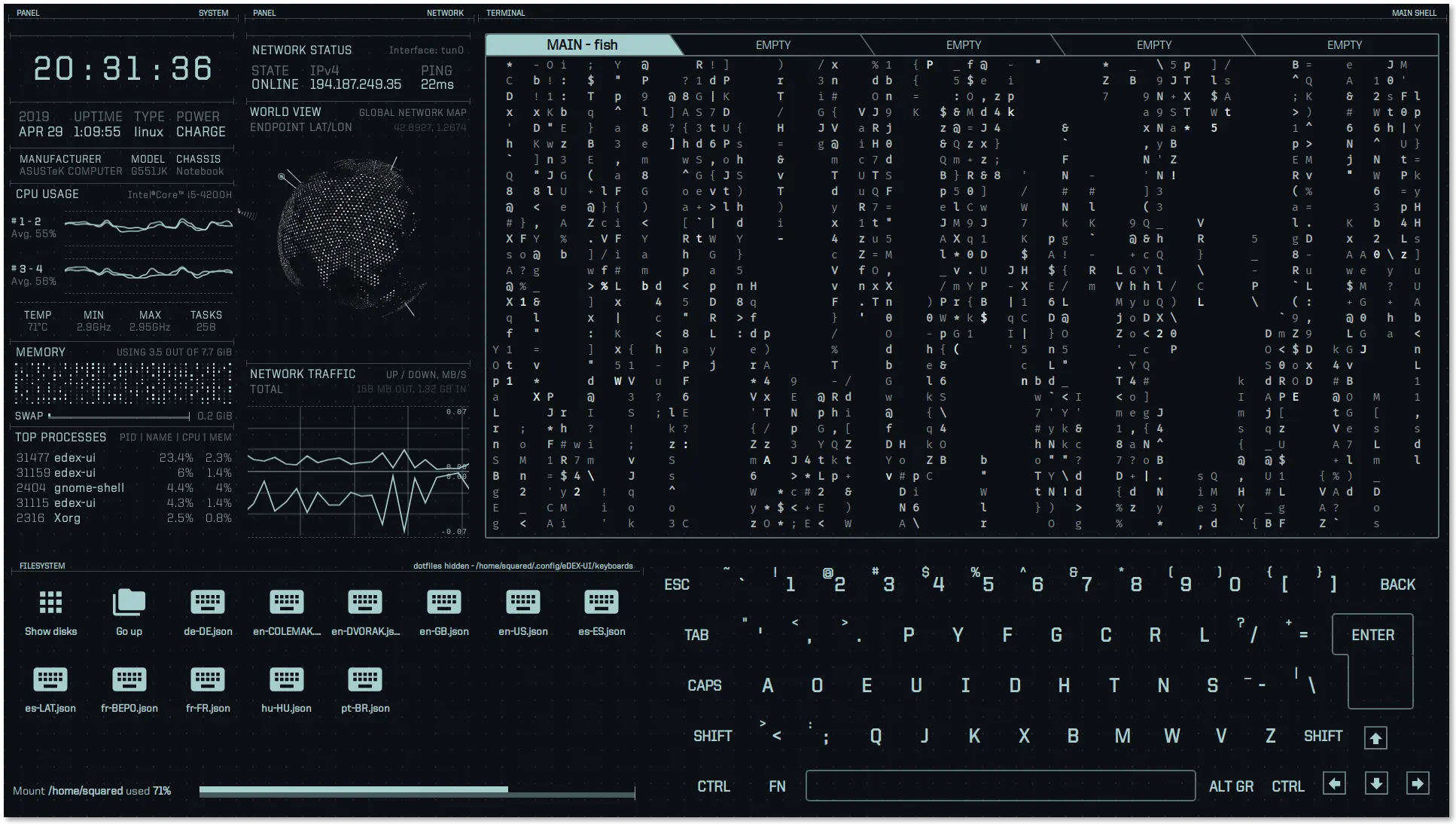 eDEX-UI是一个全屏、跨平台的终端模拟器和系统监视器,它的外观和感觉就像一个科幻电脑界面。