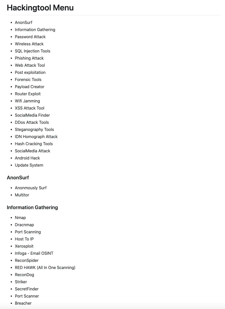 GitHub 地址→https://github.com/Z4nzu/hackingtool