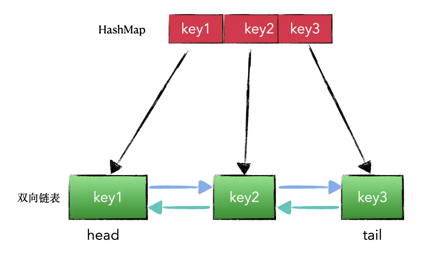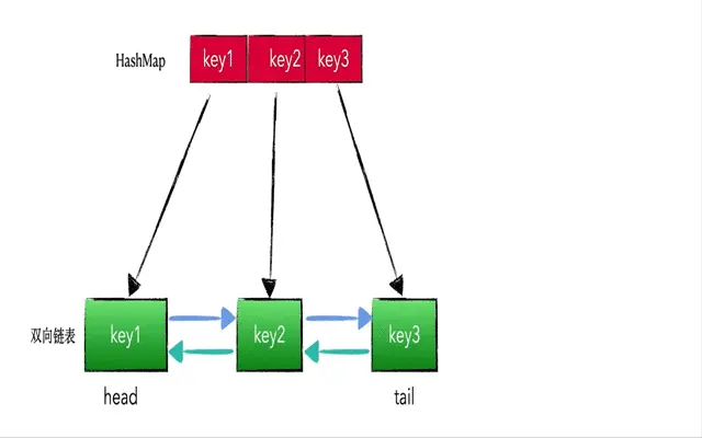HashMap用来存储 key 值对应的节点,为的是快速定位 key 值在链表中的位置,我们都知道,这是因为HashMap的 get 方法的时间复杂度为 O(1)。而如果不借助 HashMap,那这个过程可就慢了。如果要想找一个 key,要从链表头或链表尾遍历才行。