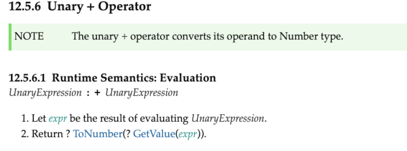The unary + operator converts its operand to Number type.
