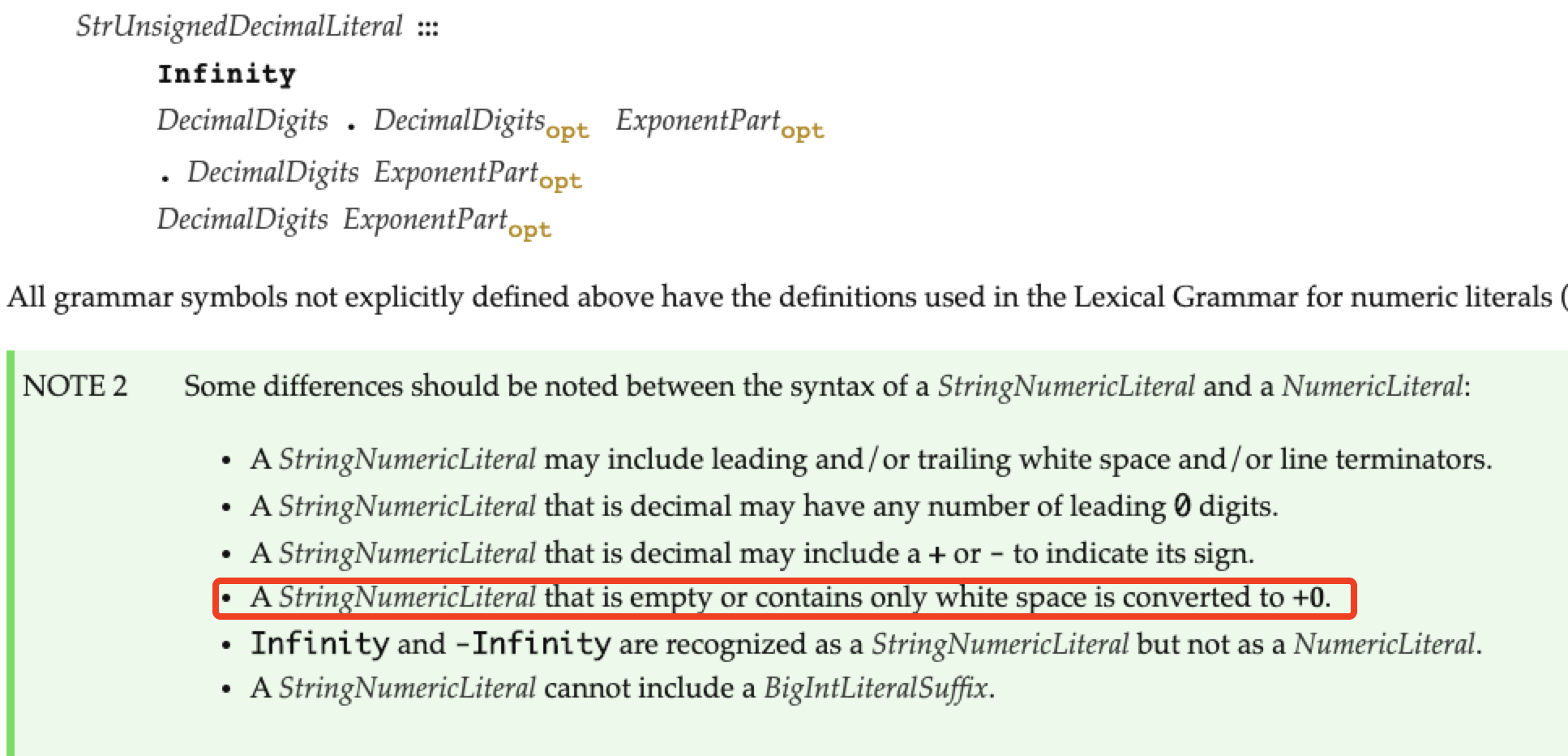 在这里有这么一句话, 如果一个 StringNumericalLiteral 是空的或者是只有 white space, 其会转换成 +0