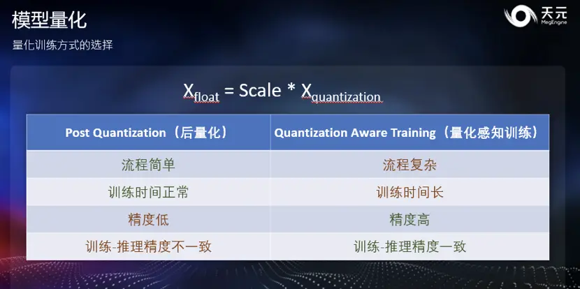 量化感知训练则指的是在训练阶段就模拟量化推理过程,让模型对量化过程进行适配。此方法能让模型保持更高精度,且在训练阶段就能掌握推理的精度,其缺点在于流程较为复杂。