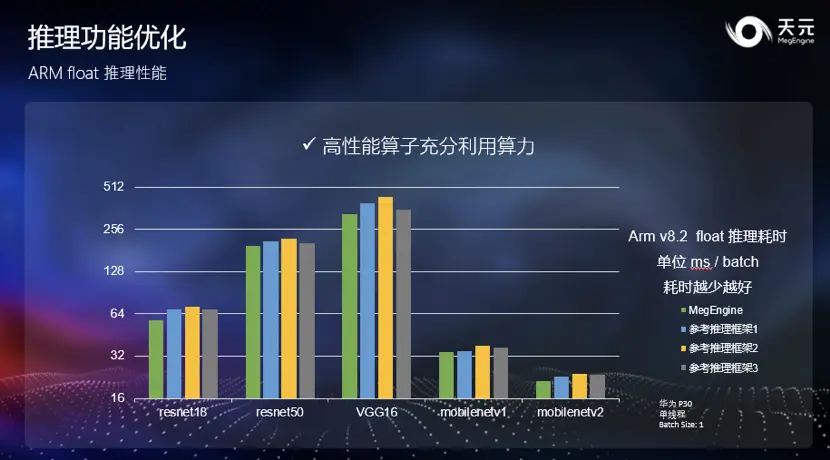 作为框架的设计者同样也是使用者,天元团队深知对于开发人员而言,性能往往是在推理阶段最关注的指标,为了性能,即便麻烦也需要将模型转换到更快的推理框架上。