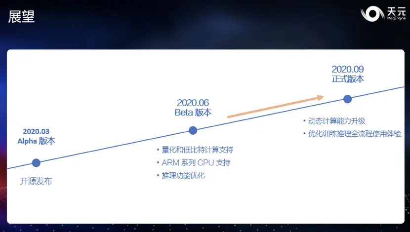 目前,天元团队正在为 9 月的正式版本进行开发,届时希望能够提供更完善的动态计算能力,让训练侧可以更加自由的表达计算形式。另外,天元会进一步优化训练和推理的全流程使用体验,让深度学习从算法到落地更加高效。