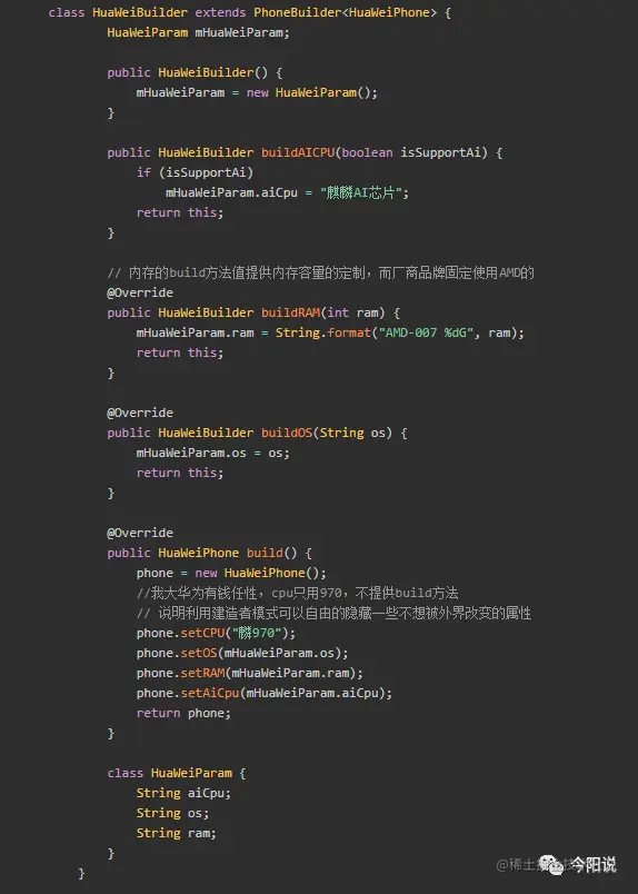 5. 使用Builder构建手机实例,如下程序,构造不同型号的华为手机就非常方便了