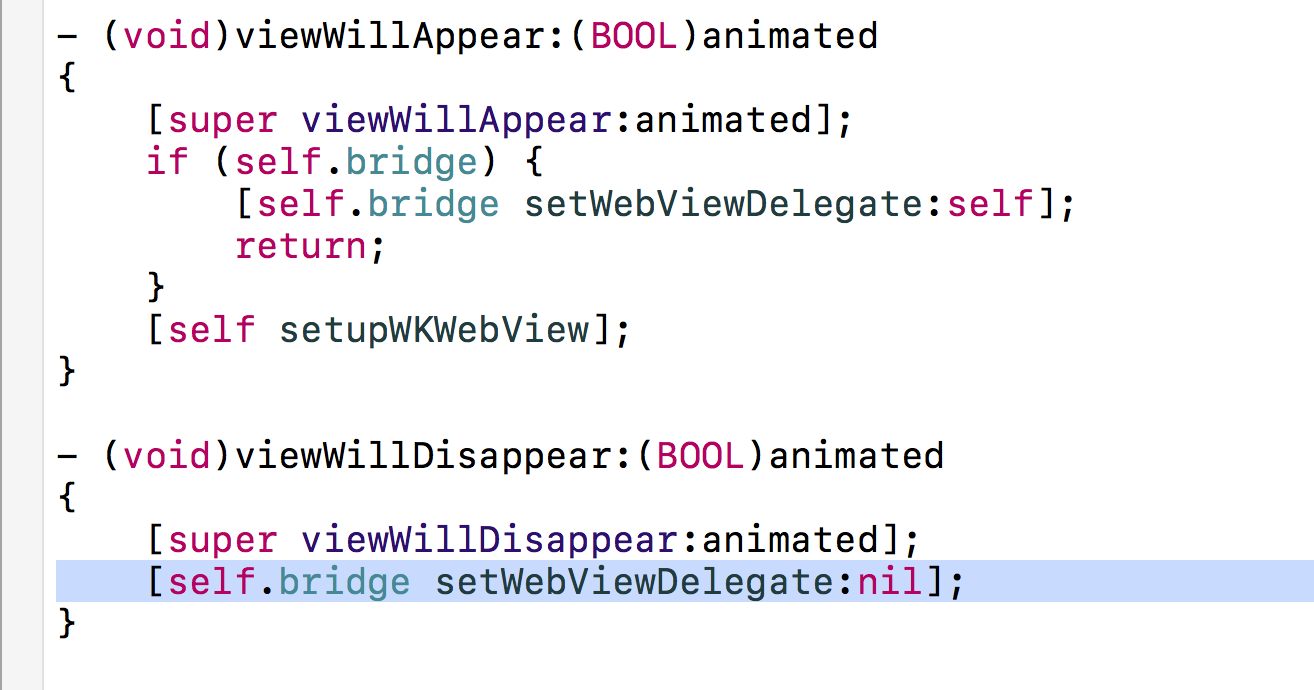 由于源码中对_webViewDelegate进行了强引用关键代码如下图,所以使用 WKWebViewJavascriptBridge 必然会导致循环引用。