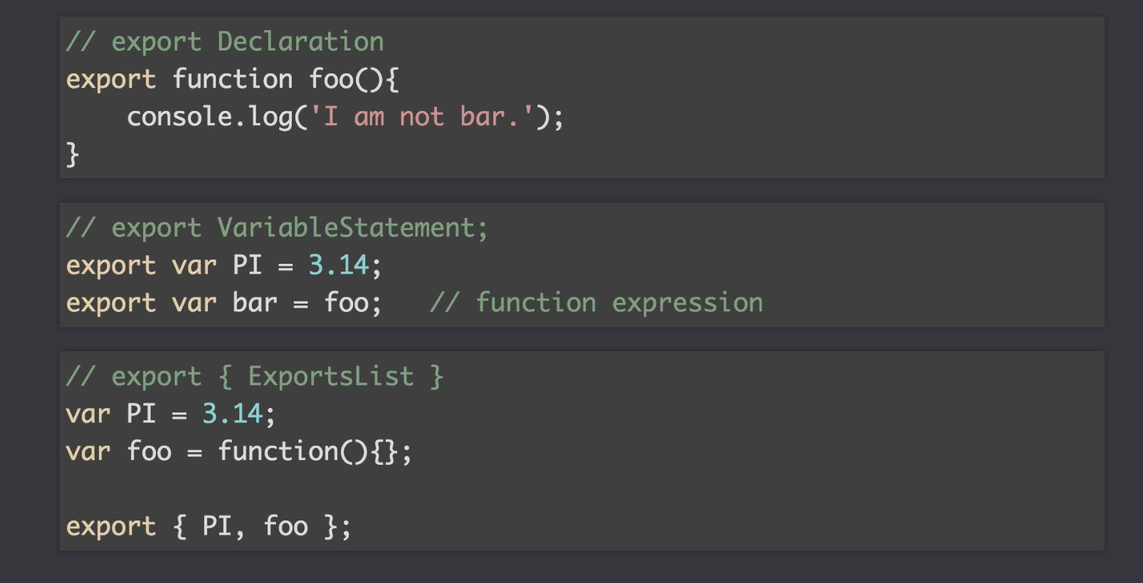 文件:exp.js function exp () { this.foo = function () { // do someing … } this.bar = function () { //do someing … } }