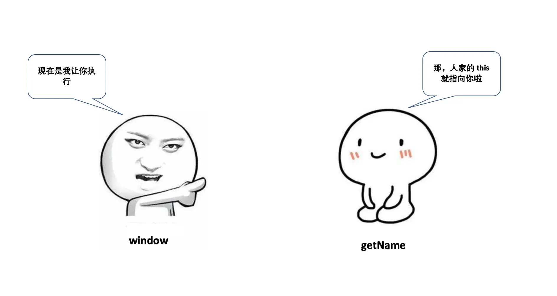 定义一个对象,将getName当做这个对象的方法,最后通过obj.getName()来执行,你会惊喜的发现,this已经指向了obj。原因就是:调用函数的对象是obj