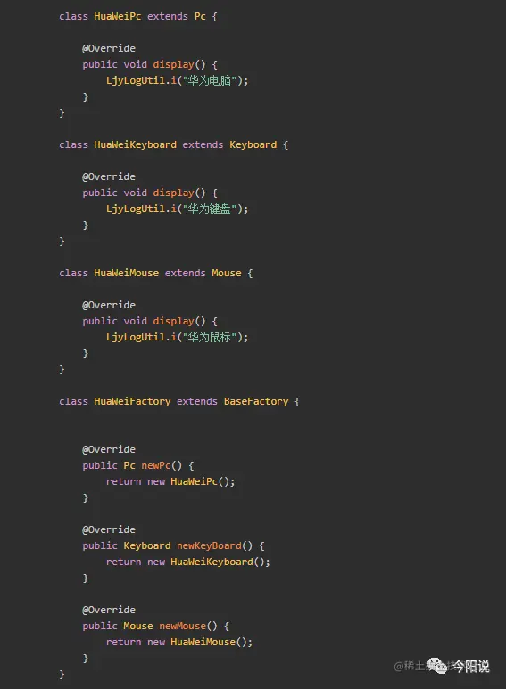 6. 当新增具体产品,如华为电脑和外设时,只需通过继承产品基类创建具体的产品类,继承工厂基类创建具体的工厂类即可