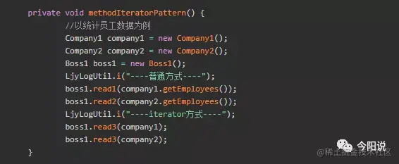 5. 创建实例进行遍历, 从这里就可以看出迭代器模式(read3)的好处了, 1. 实现了解耦,boss类不再持有员工的引用;2. 方便扩展,若又有个company3,4,5,6...都是不同的数据结构实现的,若是普通方法去遍历那么还要修改boss类的代码,而如果用迭代器模式实现则只需要新增的company类实现迭代器接口就好了