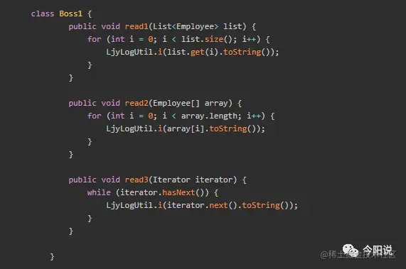 4. 创建一个老板类,它需要去遍历访问员工数据,里面有三个方法,分别是对数组遍历,对List遍历,以及使用迭代器遍历