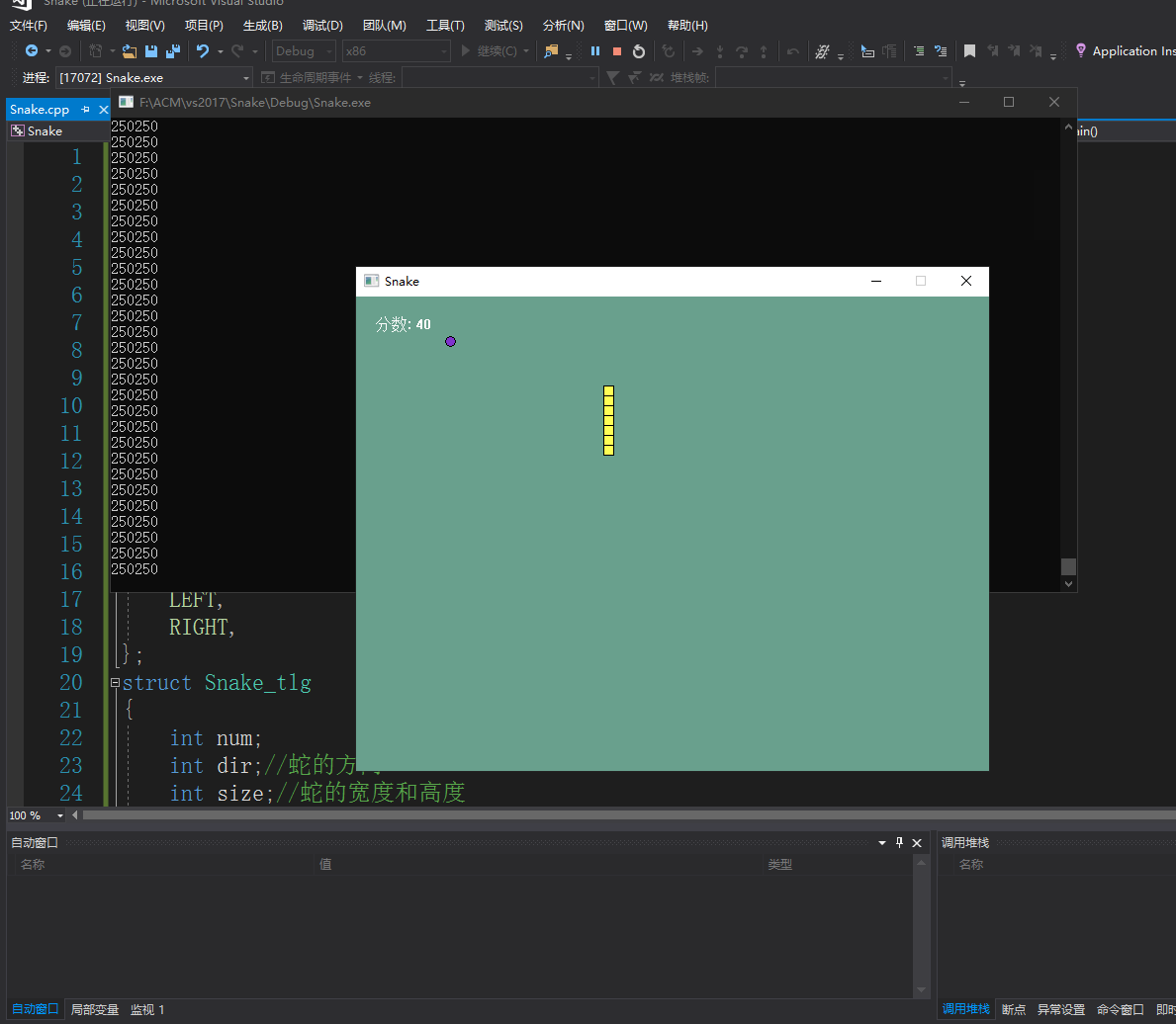 printf("%d%d\n", snake.coor[i].x, snake.coor[i].x);