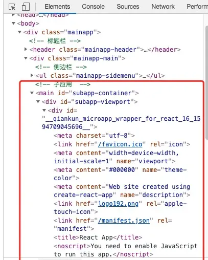 运行后,代码入图所示:HTML entry接入的方式,让你接入微应用像使用 iframe 一样简单。但并没有用到iframe。
