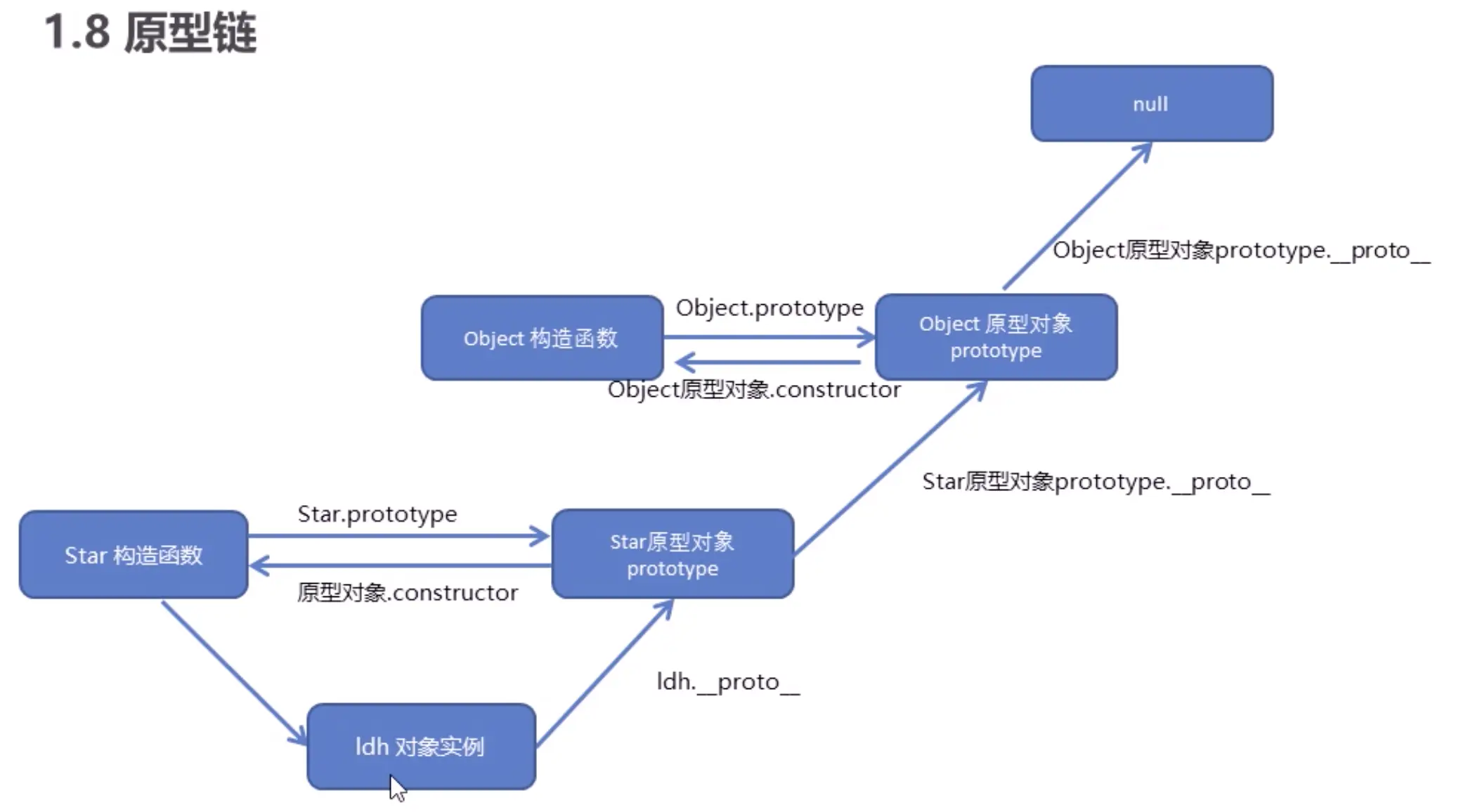 function Person(a, b) { this.a = a; this.b = b; Person.prototype = { constructor:Person, <!--会强制指向--> say(){ console.log('say'); }, sum(){ console.log('sum'); } } } let curry = new Person(123, 456); let kobe = new Person(111, 222); console.log(curry.__proto__); console.log(Person.prototype); <!-- --------------------------------------------------------> function Person(a, b) { this.a = a; this.b = b; Person.prototype = { constructor:Person, say(){ console.log('say'); }, sum(){ console.log('sum'); } } } let curry = new Person(123, 456); let kobe = new Person(111, 222); console.log(curry.__proto__.constructor); console.log(Person.prototype.constructor); console.log(curry.__proto__.constructor===Person.prototype.constructor); //ture