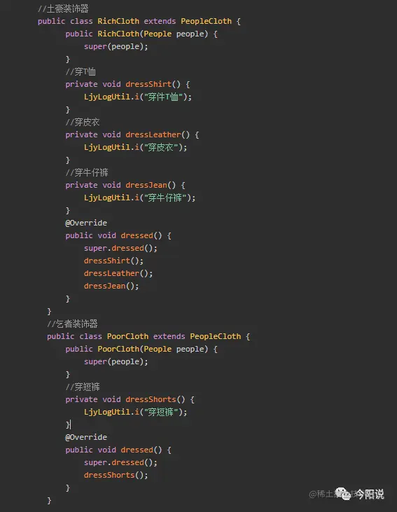 3. 创建装饰器的实现类,一个土豪装饰器,一个乞者装饰器