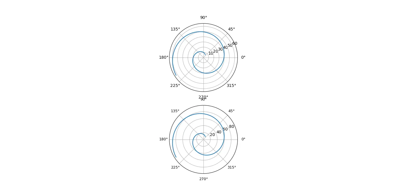 使用matplotlib.pyplot的API:subplot画极坐标图只要传递一个参数:“polar=‘True’”就可以了,但是subplots不接受polar这个参数,它接收一个字典类型的subplot_kw参数,参数里面使用add_plot的参数。好像有点多此一举,但是有时候subplots比subplot有优势,因为它返回一个plot数组。