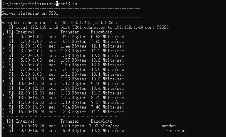 iperf3 -s