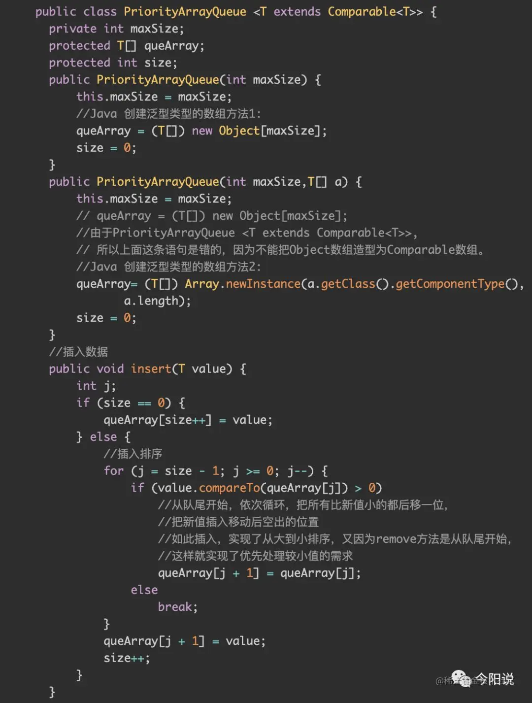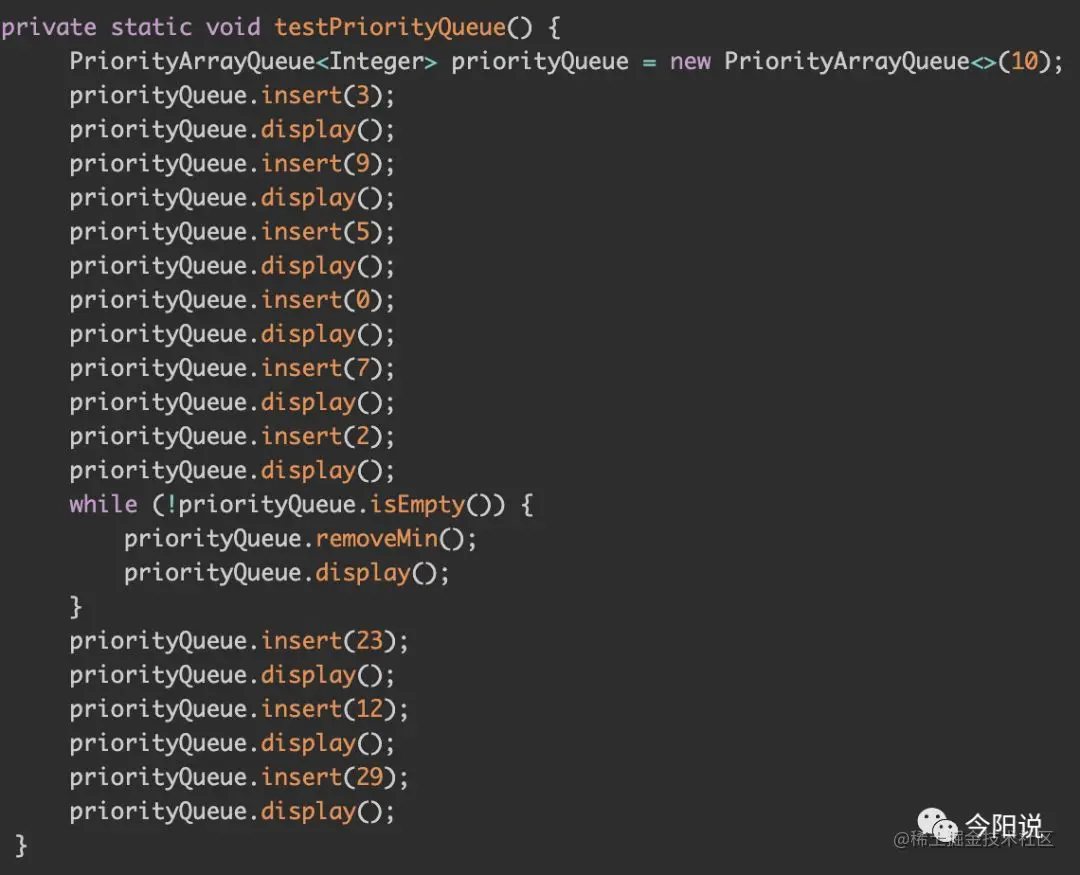 下面是用数组实现优先级队列的代码,也可以用后面会学到的堆来实现