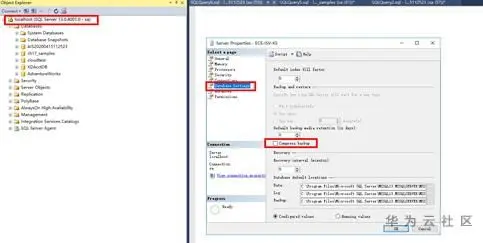 ALTER DATABASE database_name SET RECOVERY FULL;选中当前链接,右键属性,选择数据库设置,点选压缩备份。
