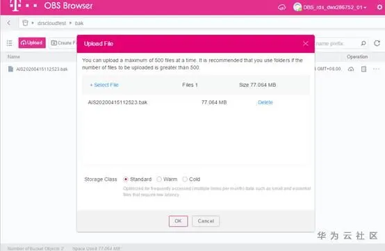 页面访问并上传文件可能无法上传,建议使用obsbroswer(可能下线)或者obs broswer plus传输文件。