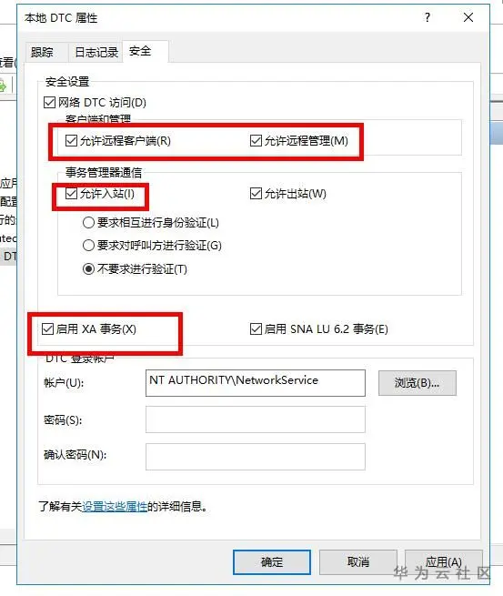 右键单击“本地DTC”,选择“属性”。按如下配置