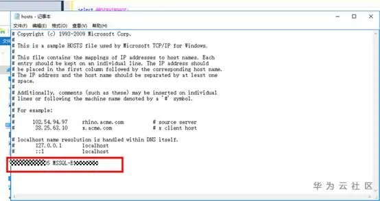 将RDS实例信息配置到ECS的hosts文件中,路径为“C:\Windows\System32\drivers\etc\hosts”