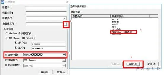 进入后,填写上一步的服务器名为当前数据服务器,填入对应的sqlserver 身份验证,目前华为云的默认数据库账号为rdsuser,填写完毕后点击数据库实体,点击右键,弹出空白框,点击所有后,可显示当前云上所有的数据库实体,选择迁移的账套数据库(注意为账套数据库会提示为无效账套)即可。