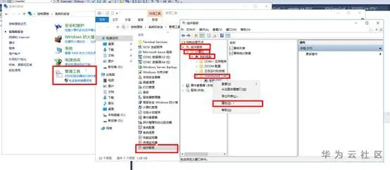 在ECS端:打开“控制面板”,选择“系统和安全 > 管理工具”,在“管理工具”页面打开“组件服务”。